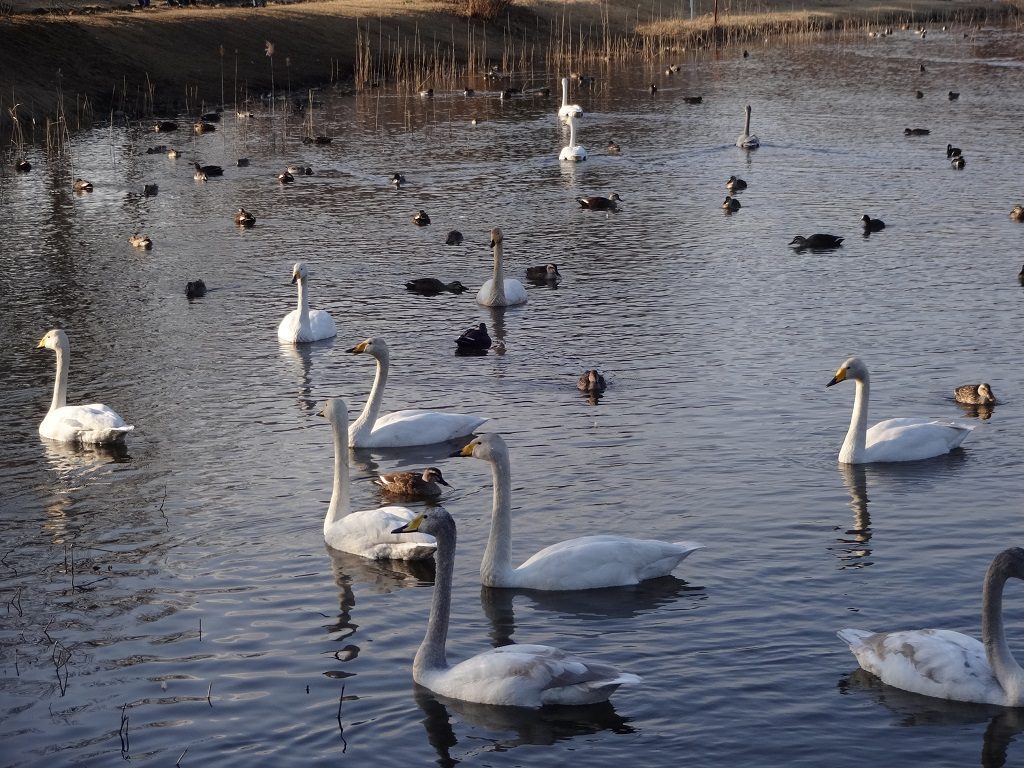 - 観察できる白鳥の種類:オオハクチョウ,コハクチョウ