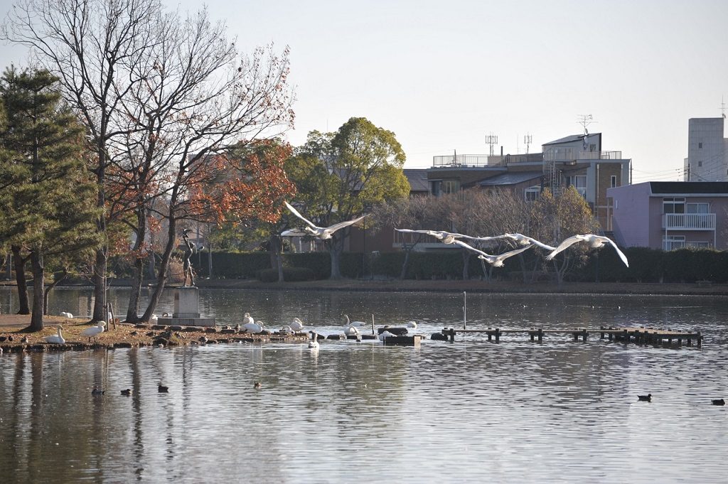全体の広さ98ヘクタールと広大な敷地の多々良沼公園(たたらぬまこうえん)は、野鳥や植物が多数生息していて自然を満喫できるスポット。飛来する白鳥が見られるのは公園北側の「ガバ沼エリア」。例年11月下旬から3月中旬に、シベリアからたくさんの白鳥が飛来してくることで観察スポットとして人気を集めています。敷地内は柵がなく見通しが良いので、子どもたちの白鳥観察にぴったりですね。珍しい白鳥の姿に思わず歓声をあげたくなりますが、大きな声に白鳥がビックリしてしまうのでそっと見守りましょう。