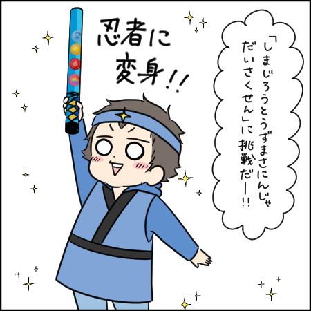 「しまじろうと うずまさにんじゃ だいさくせん」というアトラクションは、子どもたちが忍者になりきって試練に立ち向かいます。
