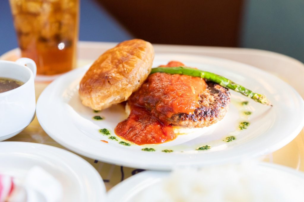 『ファインディング・ニモ』の舞台であるオーストラリアの伝統料理をアレンジしたスペシャルセット。ジューシーなハンバーグの上にサクサクのパイを添えたメインは、大人も子どもも大満足。パパもお腹いっぱいになれるボリュームでした。