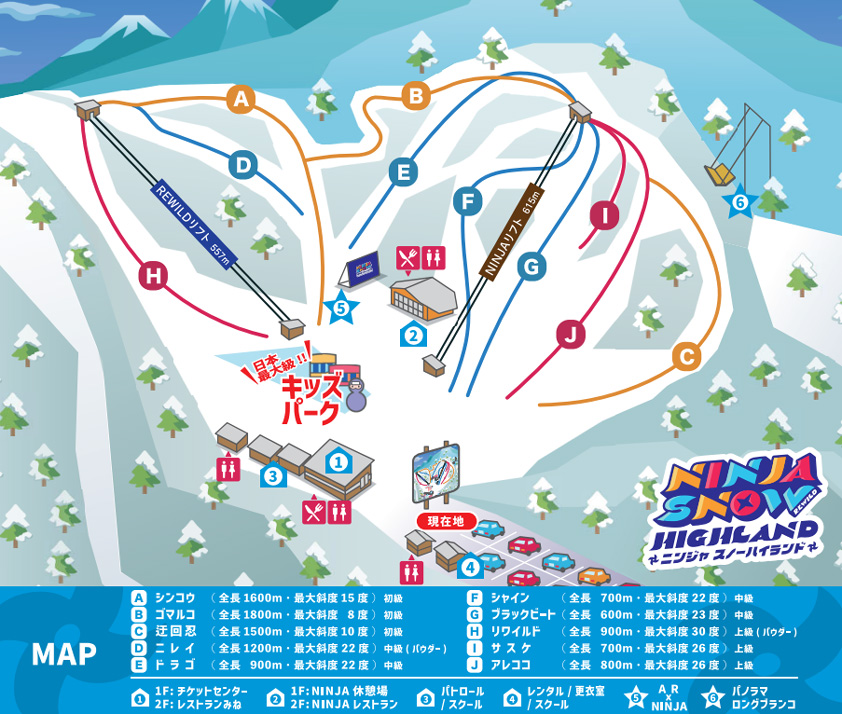 長野県須坂市にある峰の原高原スキー場を、アウトドアブランドREWILD(リワイルド)が“雪山エンターテイメント施設”としてリブランディングし、2021年12月25日に「REWILD NINJA SNOW HIGHLAND(リワイルドニンジャスノーハイランド)」となってグランドオープン。6つのキーポイントでスキーやスノーボードだけではない、スキー場の楽しみ方を提供しています。