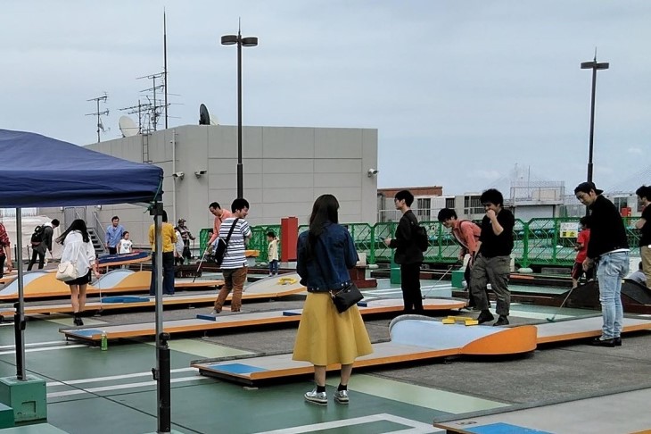 横浜ワールドポーターズ内にある横浜バーンゴルフ場は、屋上でバーンゴルフをプレイすることができます。みなとみらいの近くなのでお買い物のついでに立ち寄れるのもいいですね。