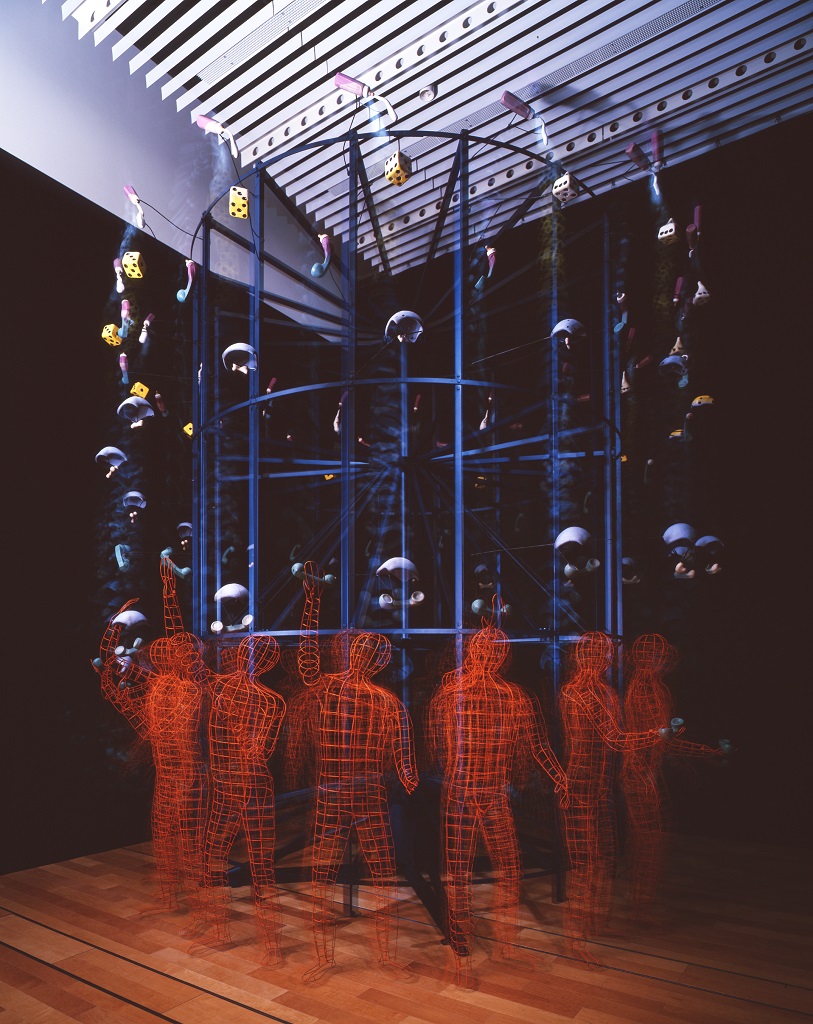 ICCに所蔵されたグレゴリー・バーサミアンの《ジャグラー》という立体作品です。複数の曲芸師や物体が、点滅するストロボによって動いているように見えてきます。物体の動きや造形の美しさはもちろん、アニメーションの原理も学ぶことができます。