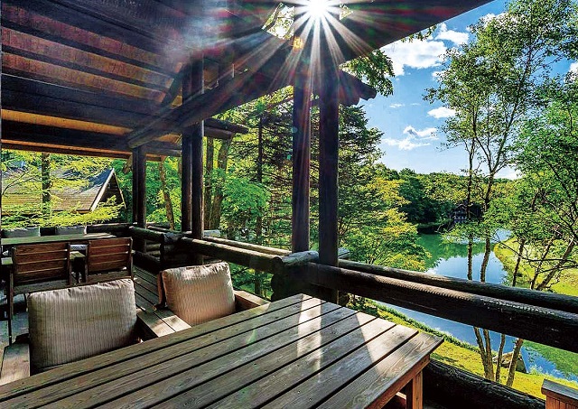 周囲の自然と一体化した湖畔のバルコニーで贅沢な時間を堪能。敷地内にあるトムトム湖が見渡せます。