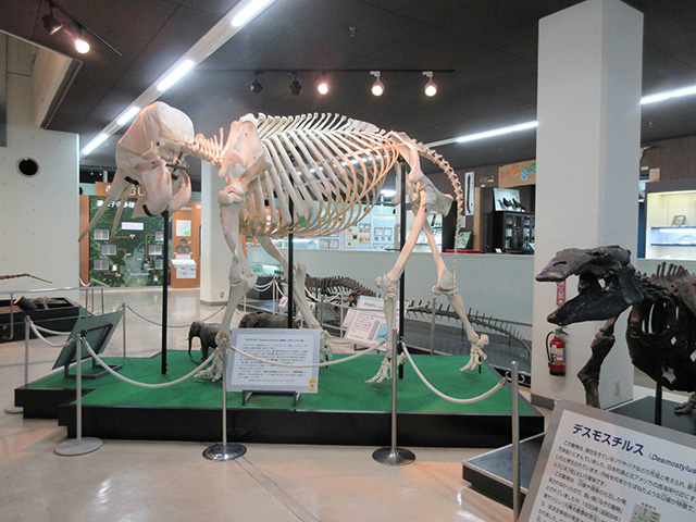 左側には大型恐竜の化石模型が展示されている