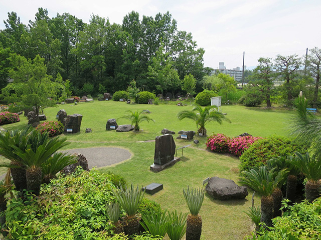広々とした屋外園にはさまざまな岩石が展示されています