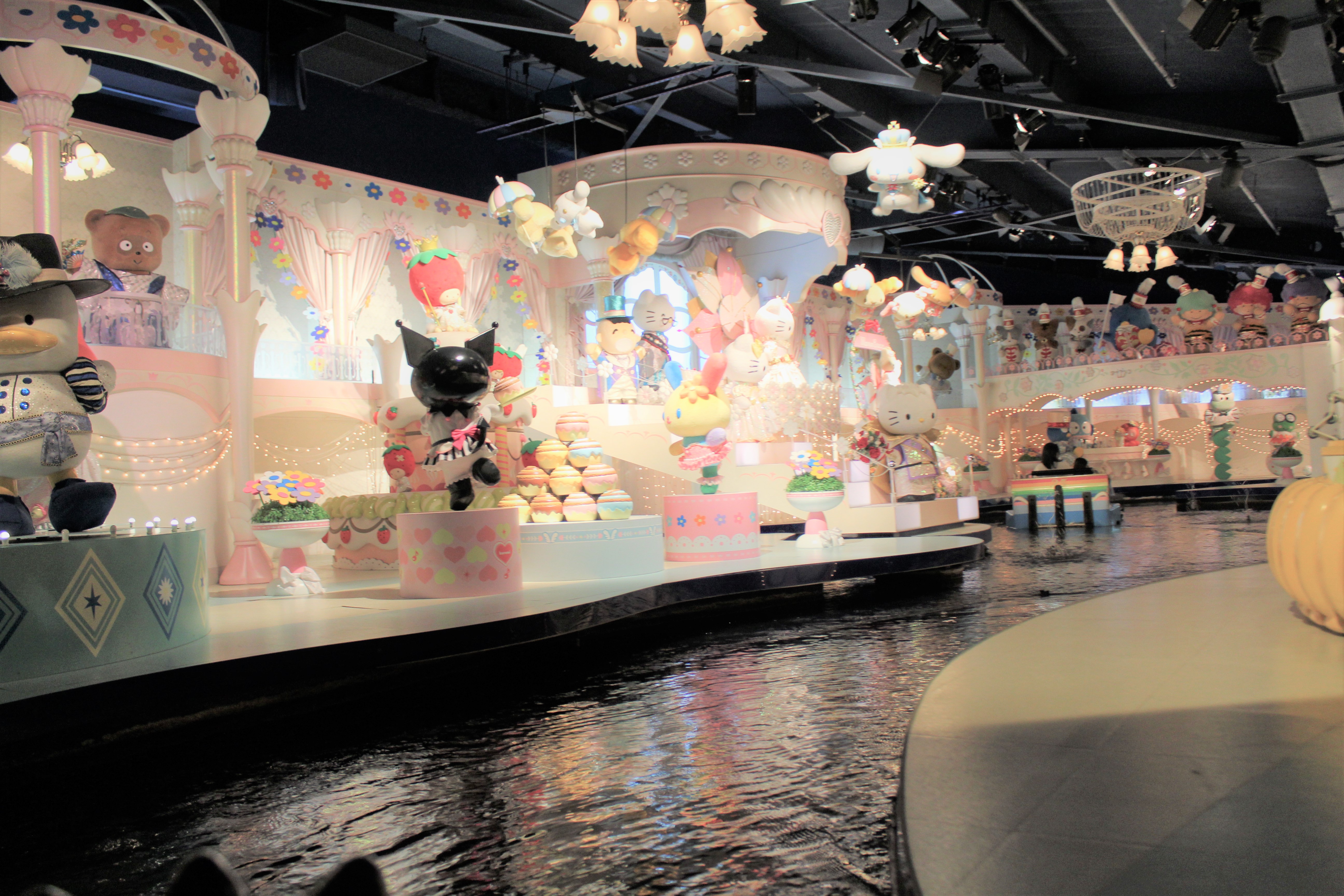 サンリオキャラクターボートライドは、ボートに乗って進んでいきます。途中、多少のアップダウンはありますが、とてもゆっくり進むので、小さなお子様や絶叫系のアトラクションが苦手な人でも安心して楽しめます!