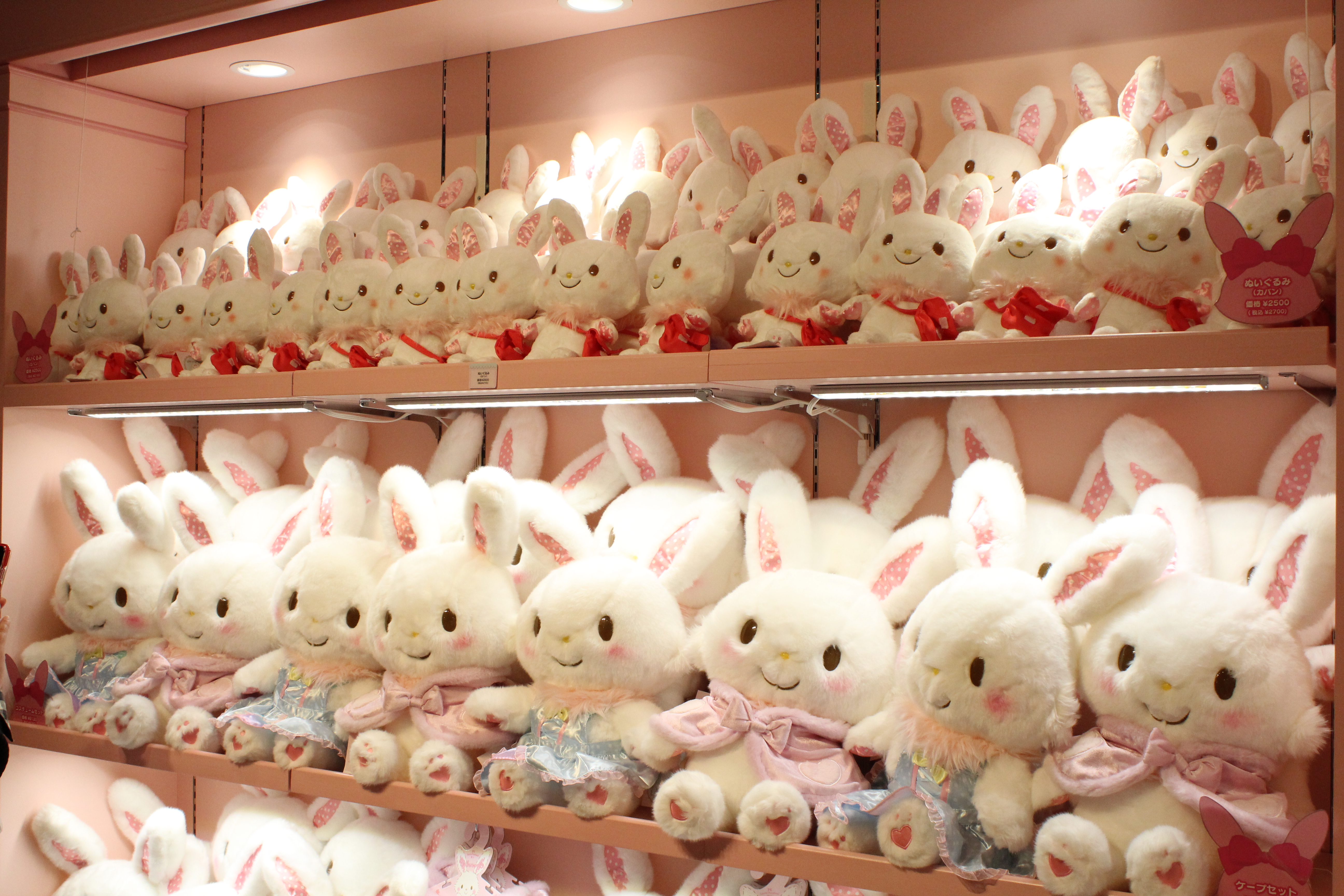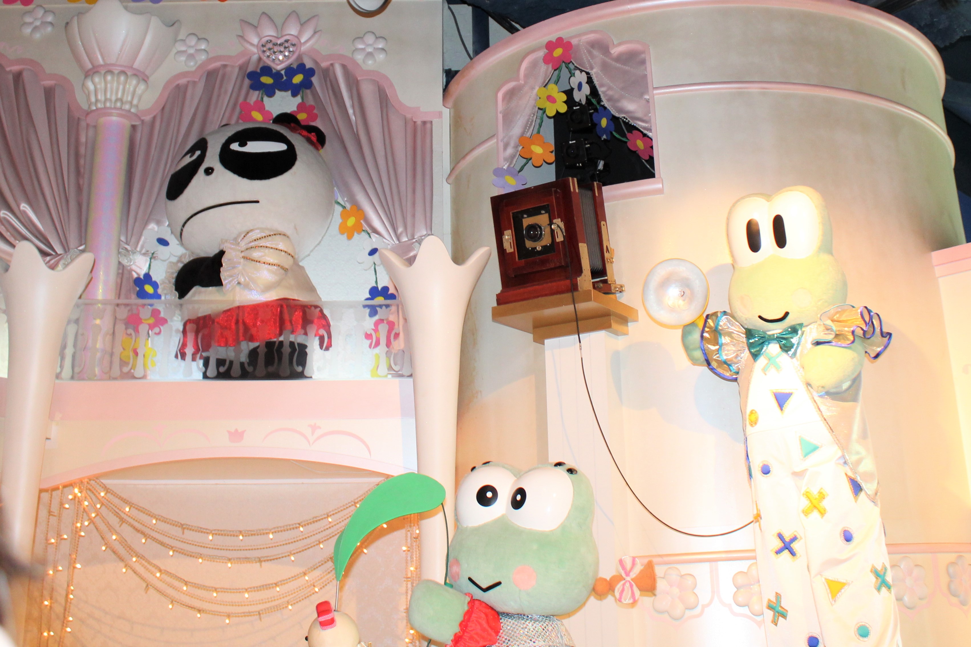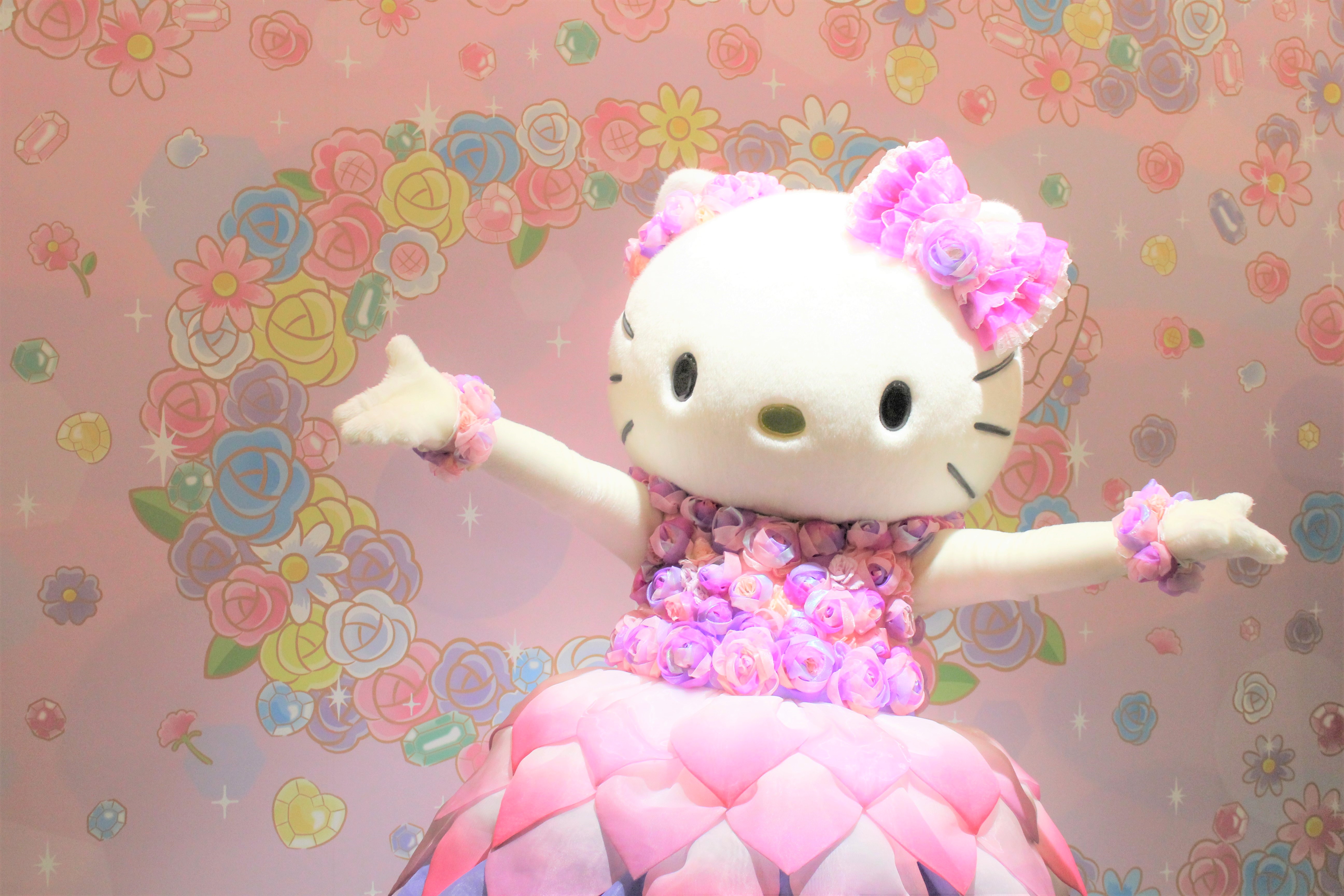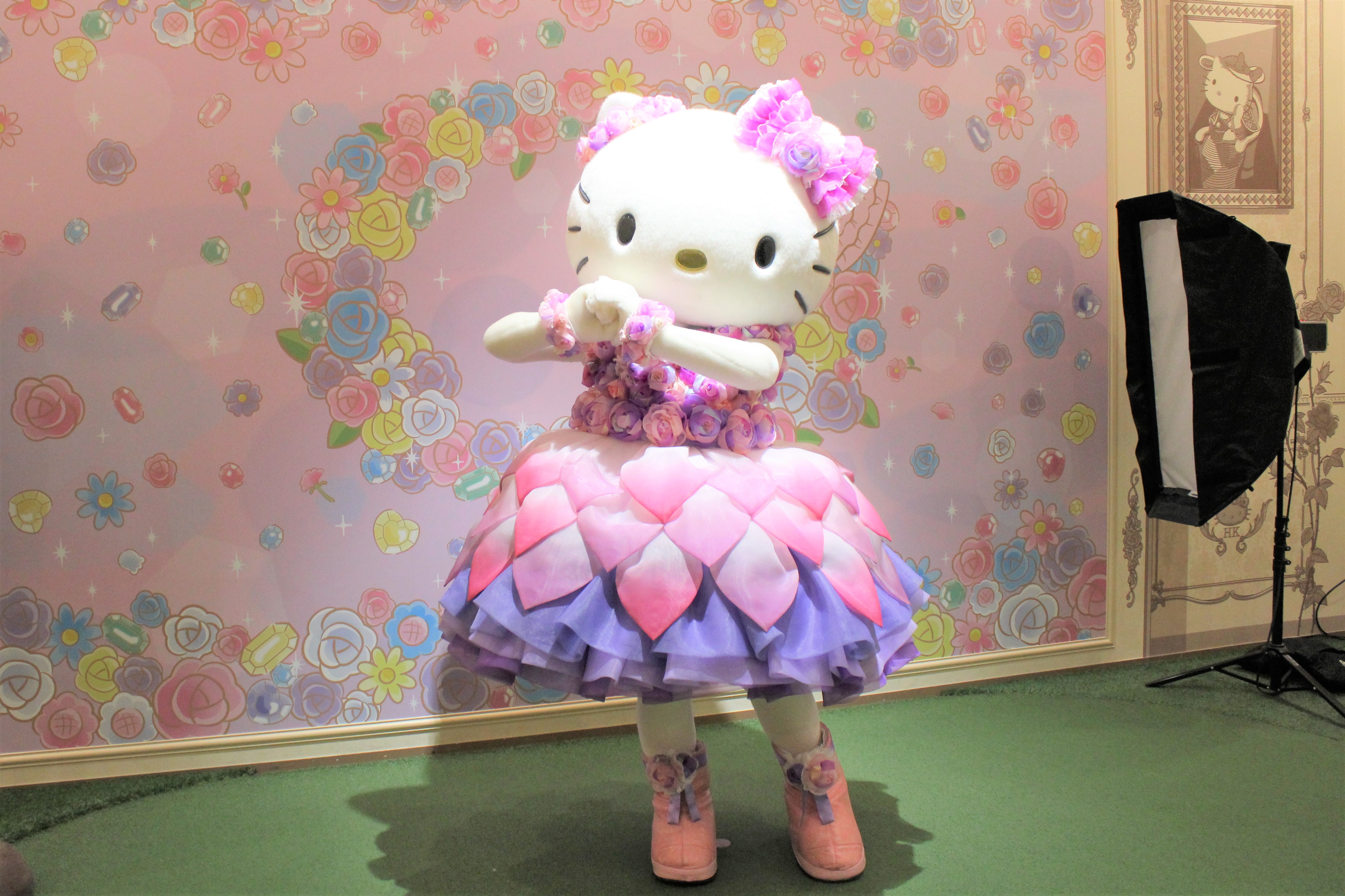 フォトスタジオの前には歴代のハローキティがずらり!