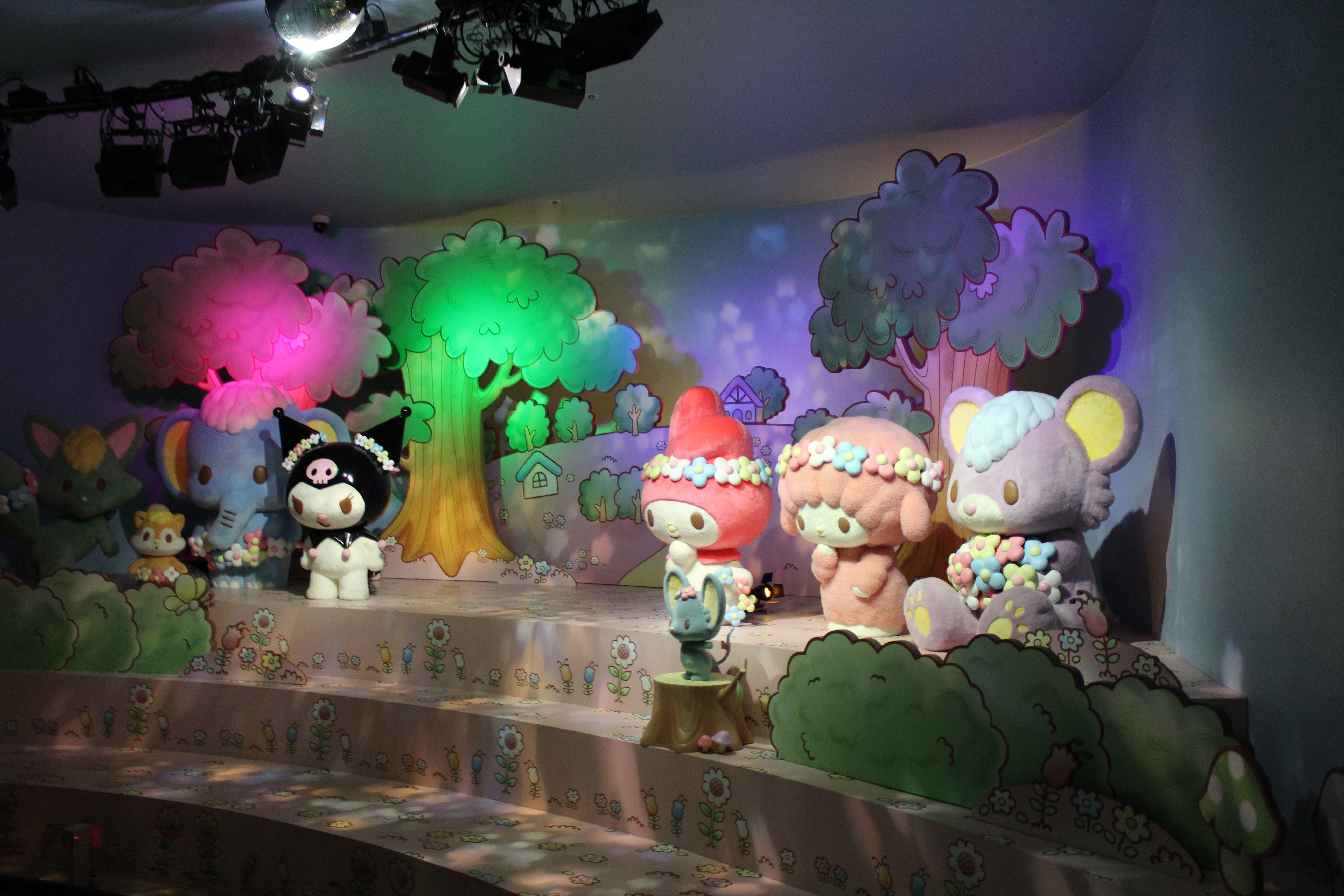 マリーランドの中では、「マイメロディのおうち」「いちご畑」「かくれんぼの森」などがあり、マイメロたちが魚釣りやお花摘みを楽しんでいる姿が楽しめます。