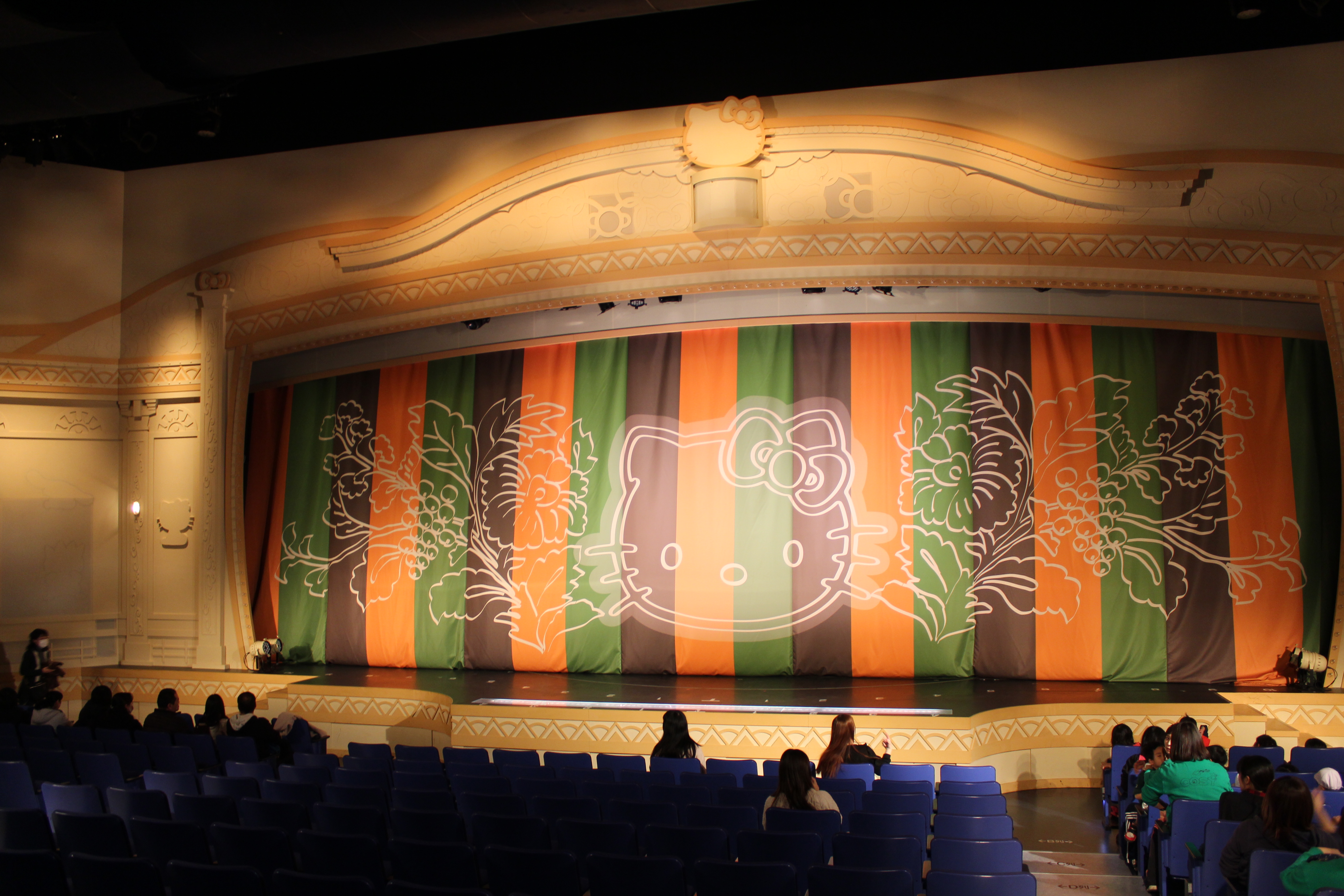 歌舞伎特有の定式幕やハローキティが描かれた提灯など、シアター内は歌舞伎ムード満点!