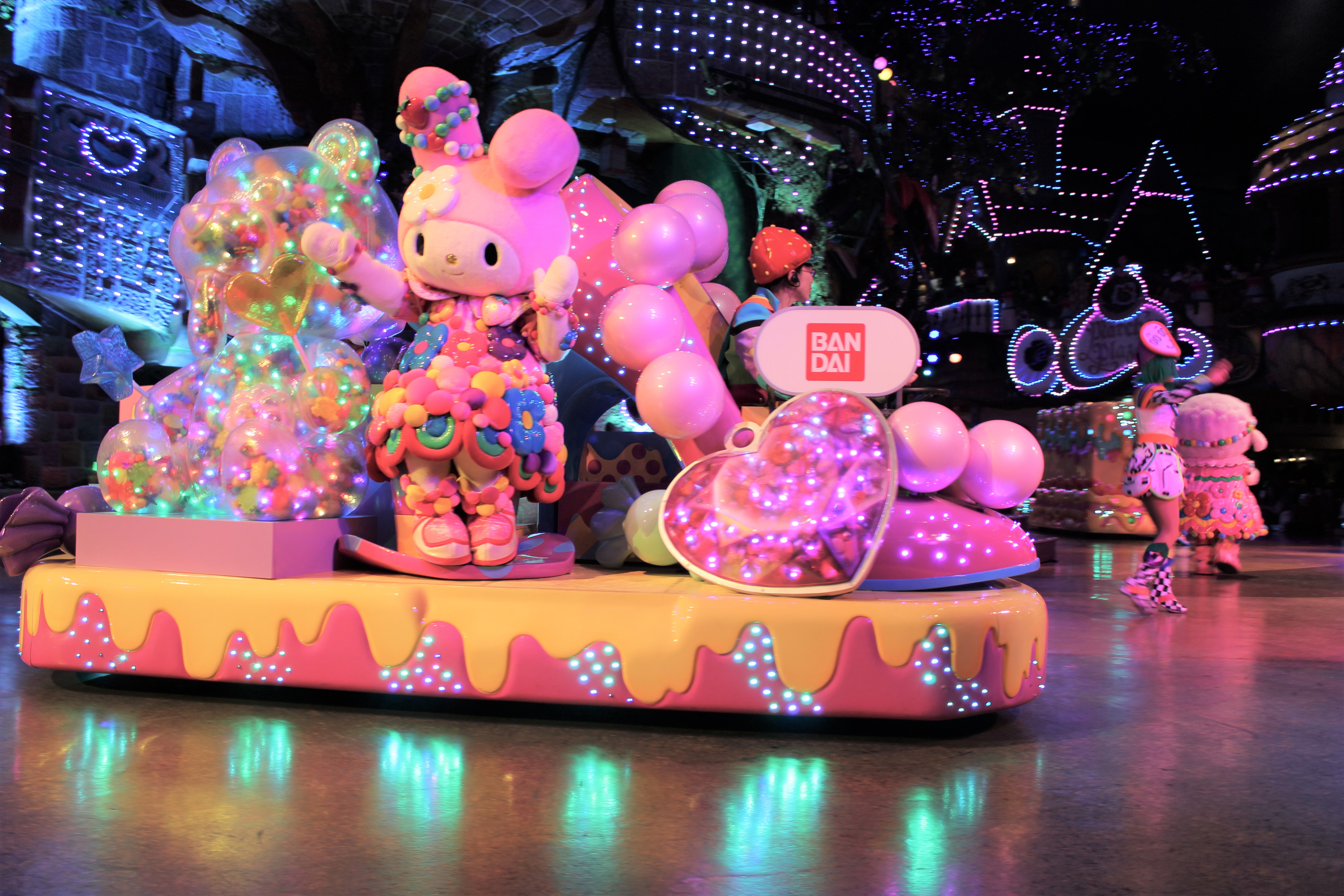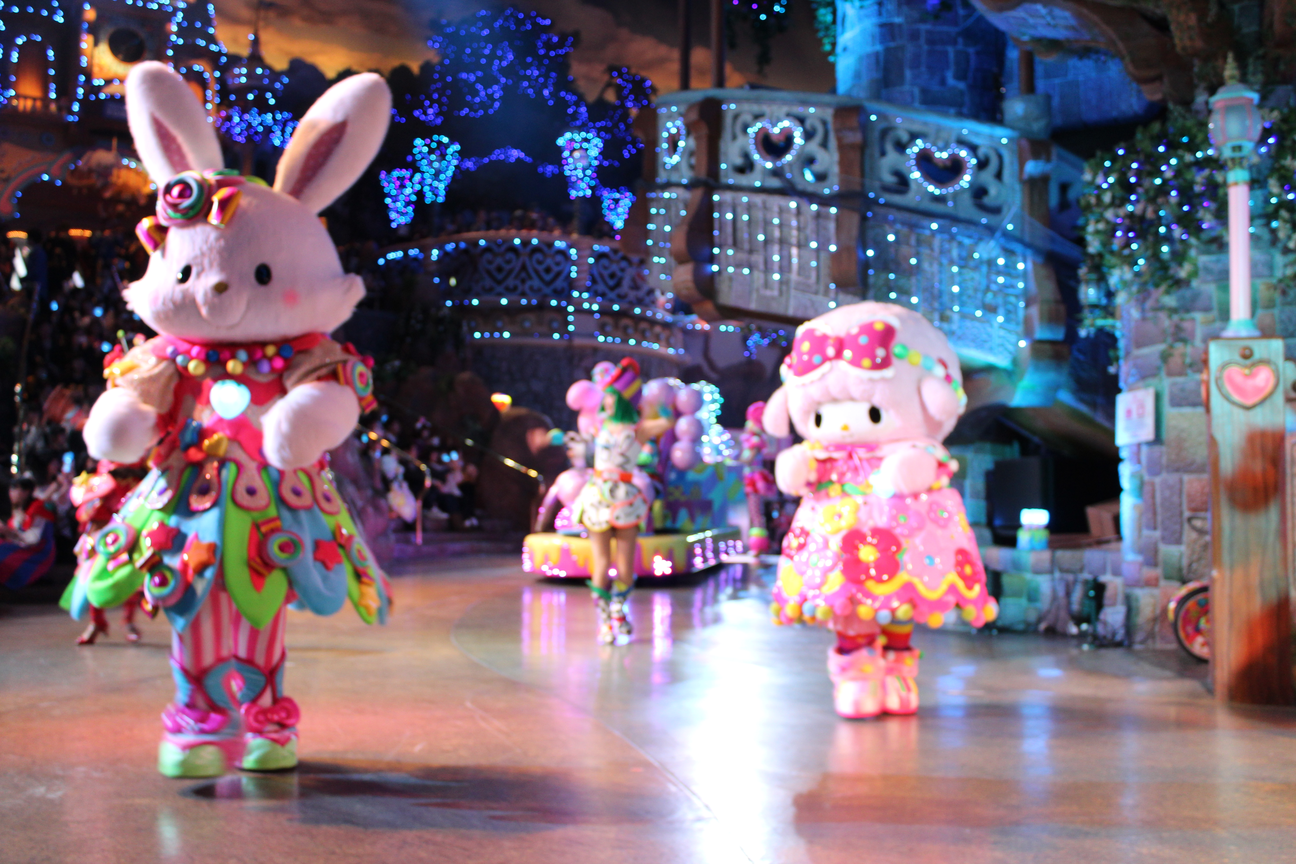 このパレードには、ハローキティをはじめサンリオの人気のキャラクターたちが総出演!しかも、演者と観客を隔てる垣根などはなく、目の前まで来てハイタッチをしてくれたりとサービス満点です。