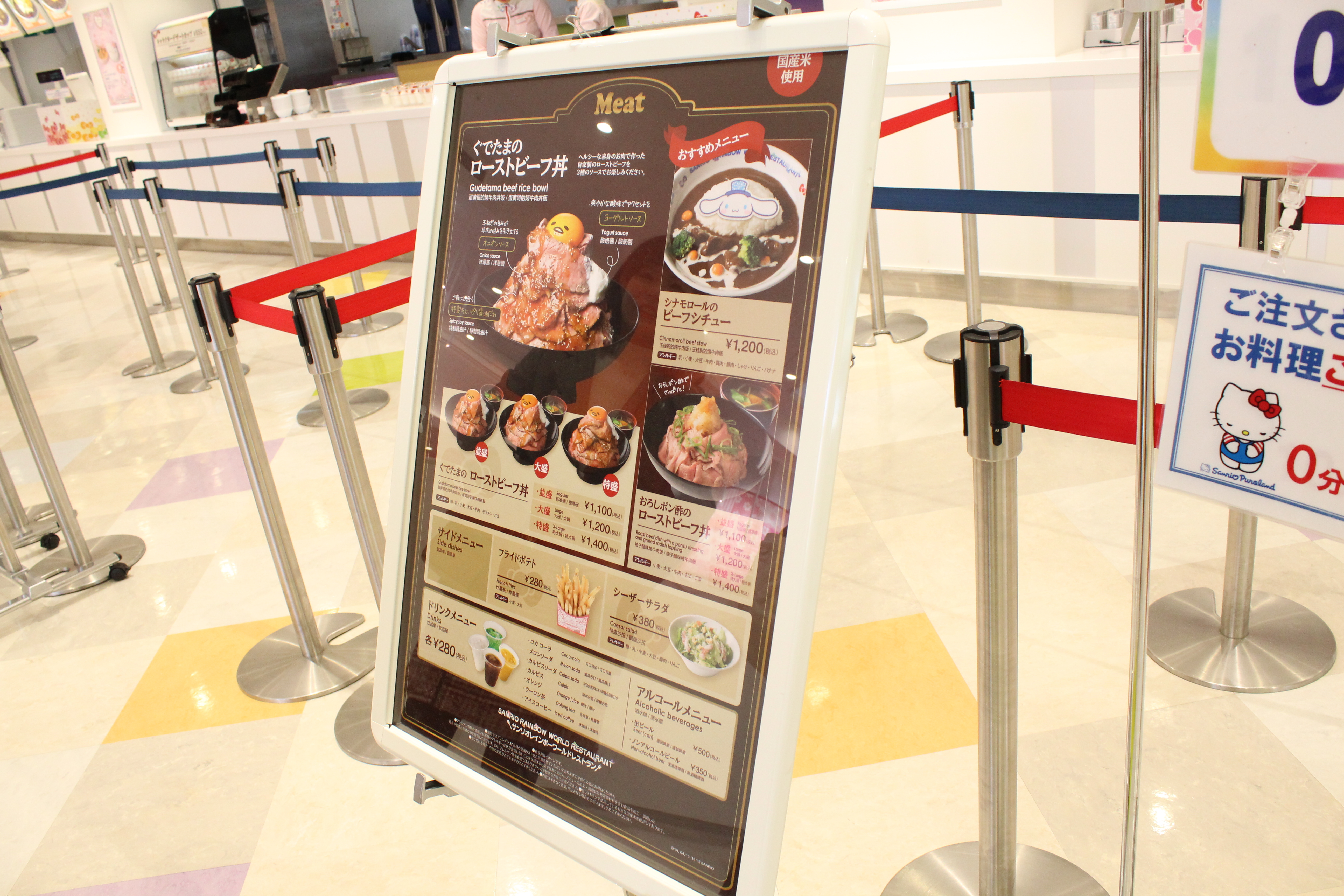 - 「サンリオレインボーワールドレストラン」の人気メニューはローストビーフ丼