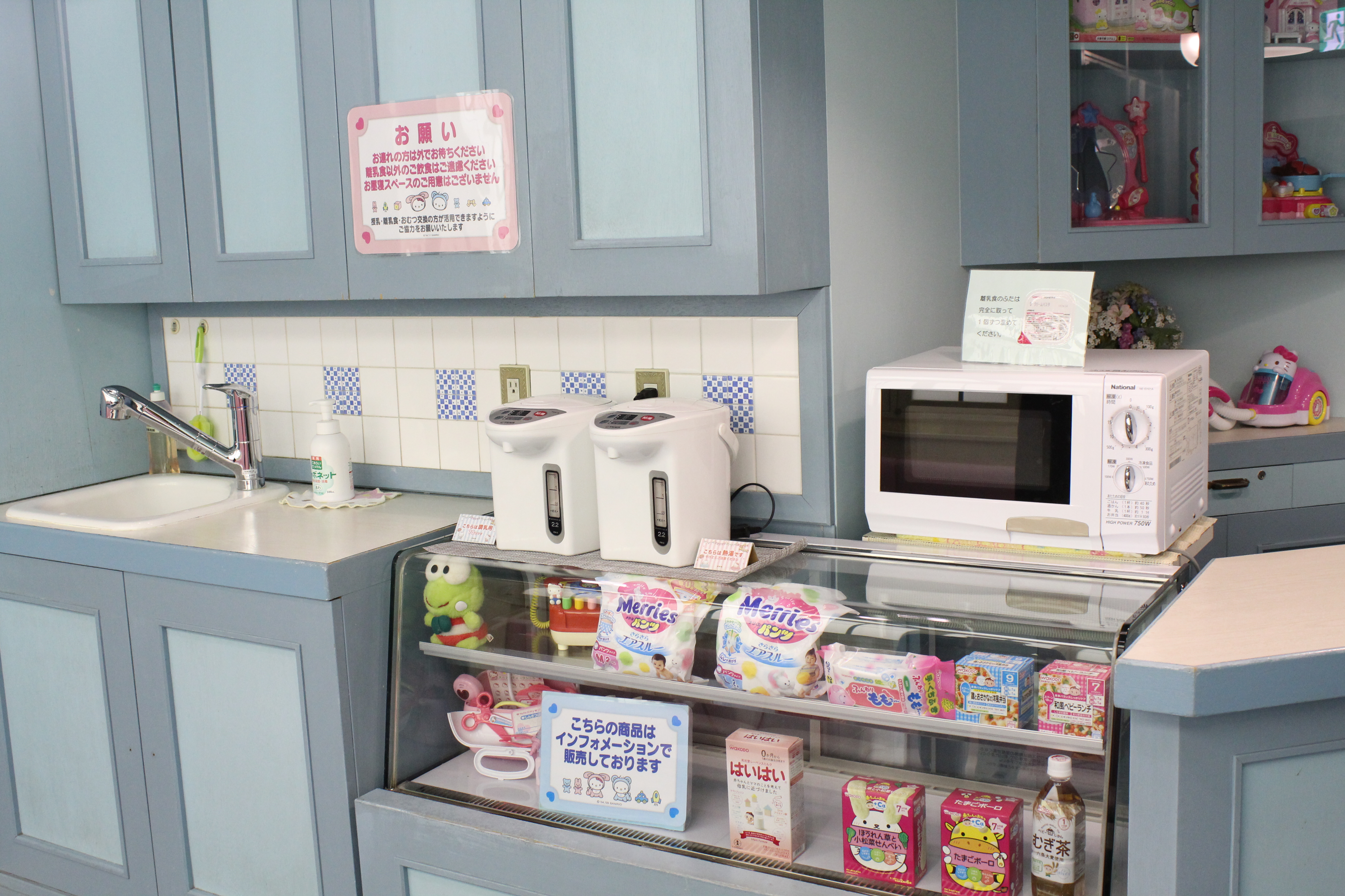 離乳食の販売があるほか、ミルク用のお湯も利用できる。