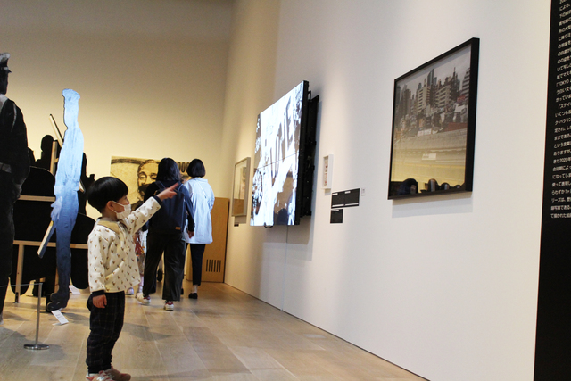 これだけ読むと、「小さい子どもは理解が難しいのでは?」と思いますよね。でも、ちゃんとしたメッセージがわからなくても大丈夫。子どもは独自の楽しみ方をしていましたし、そういった多視点がこの展示では歓迎されている。そんな空気もあって、親も肩肘張らずに鑑賞できます。