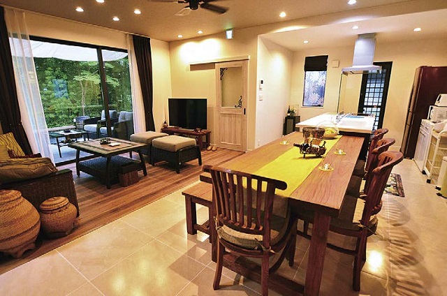 21畳もの広いリビング&ダイニングでは、リゾートパーティーも開けます。