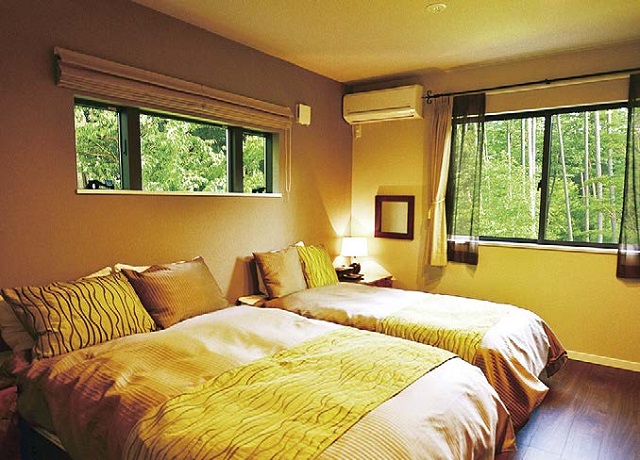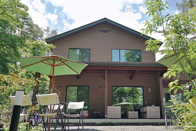 「富士の住み家 りぶらん」は、河口湖ICから約5㎞、静かな森の中にあるプライベートヴィラ。5000㎡もの敷地に立つのはたった2棟の2階建てヴィラ。それぞれ十分な距離がとられているため、互いを気にすることなく滞在できるのも魅力です。鳥の声や木々の匂い、自然を五感で感じる自分たちだけの隠れ家は家族連れにも人気。
