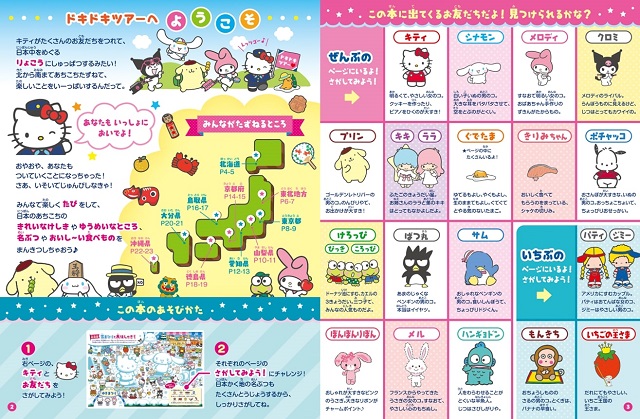 ハローキティやシナモロールをはじめとするサンリオの人気キャラクターたちが、日本各地の名所や観光地を旅するさがし絵絵本、『るるぶ 学べるさがし絵えほん みつけて! サンリオキャラクターズ みんなでドキドキ日本一周旅行』(2018年刊)が、お出かけ用に持ち歩きやすくコンパクトなサイズになって登場です!絵の中に描かれたキャラクターや各地の名物や特産品など、それぞれのお題を探しながら日本の名物を覚えられます♪ 幅広い年代から支持されるキャラクターたちが大集合で、親子でいっしょに楽しく学ぶことができますよ。