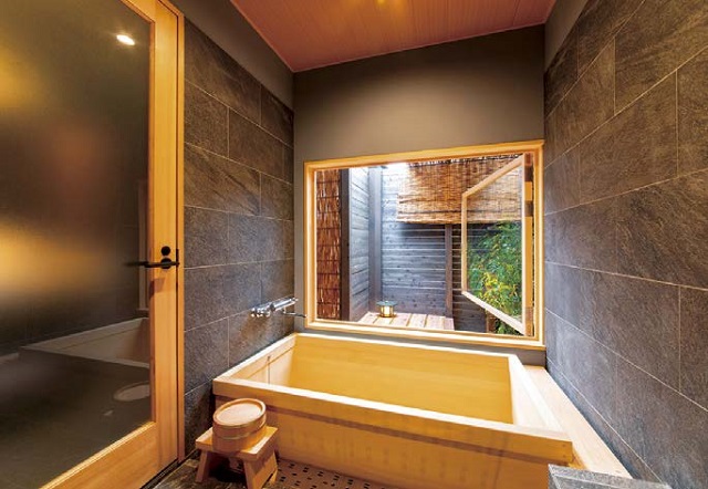 日本色の客室棟は、古屋を現在のライフスタイルに合わせて改装したものが6棟、新築の2棟で構成。囲炉裏があり、三方を庭で囲まれた「千草」、ロフト付きの「竜胆」、和モダンな「撫子」、ベッドルームに天窓のある「月白」など個性的な部屋が揃います。近くには天然温泉があり、宿泊者は無料で入浴できます。