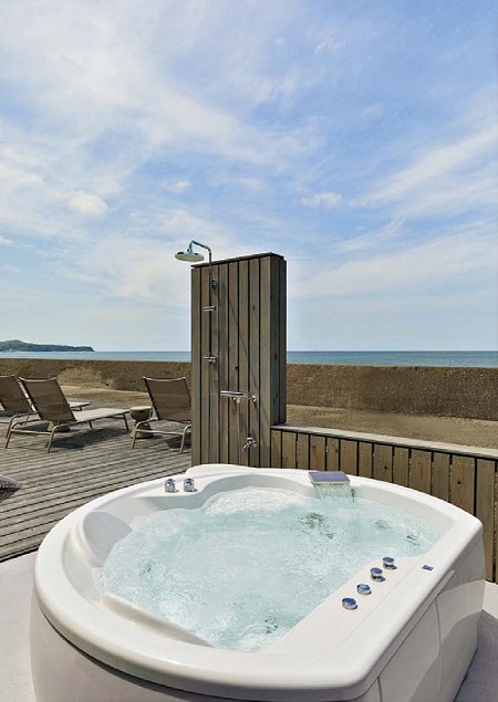 青空の下で楽しめる1階テラスのジャクジー。開放感あふれます。