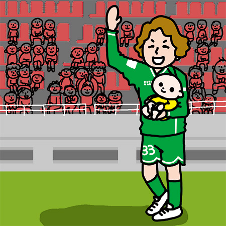 岩清水さんは保育園に子どもを預けてから出勤します。ママと選手を両立しててすごい!