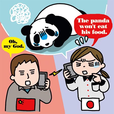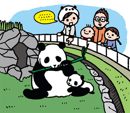 パンダは1日20キロ以上の竹を食べます。ふんの状態や量を観察して体調をチェック!