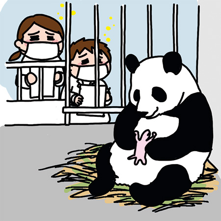 パンダの出産に立ち会えました。赤ちゃんの成長を見守るのは貴重な経験です。お世話やお客さんとの会話も楽しい!