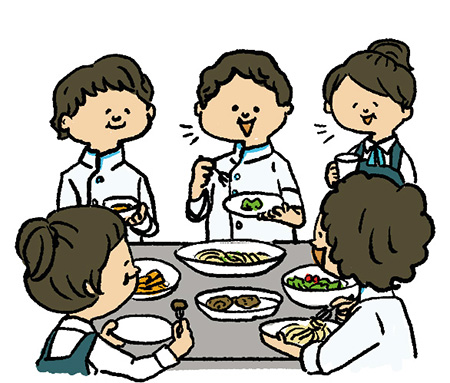 毎日お昼はスタッフと一緒にまかないを食べます。
