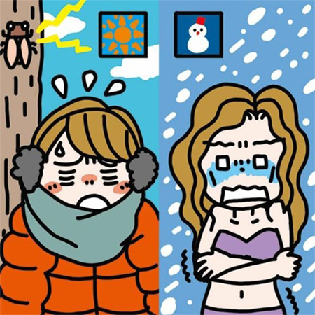 寒い時期に水着、熱い時期に冬服の撮影をすることです。