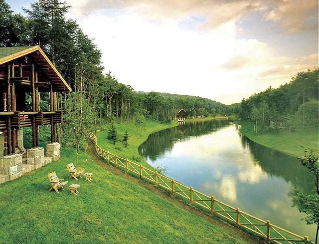 新千歳空港から送迎車で約30分。北海道の大自然を心ゆくまで堪能できる本格リゾートです。「ニドム」とはアイヌ語で「豊かな森」を意味する言葉。自然豊かな丘陵地にたたずむログコテージは、フィンランドの北極圏ラップランド地方に群生するポーラーパイン材で作られたものです。