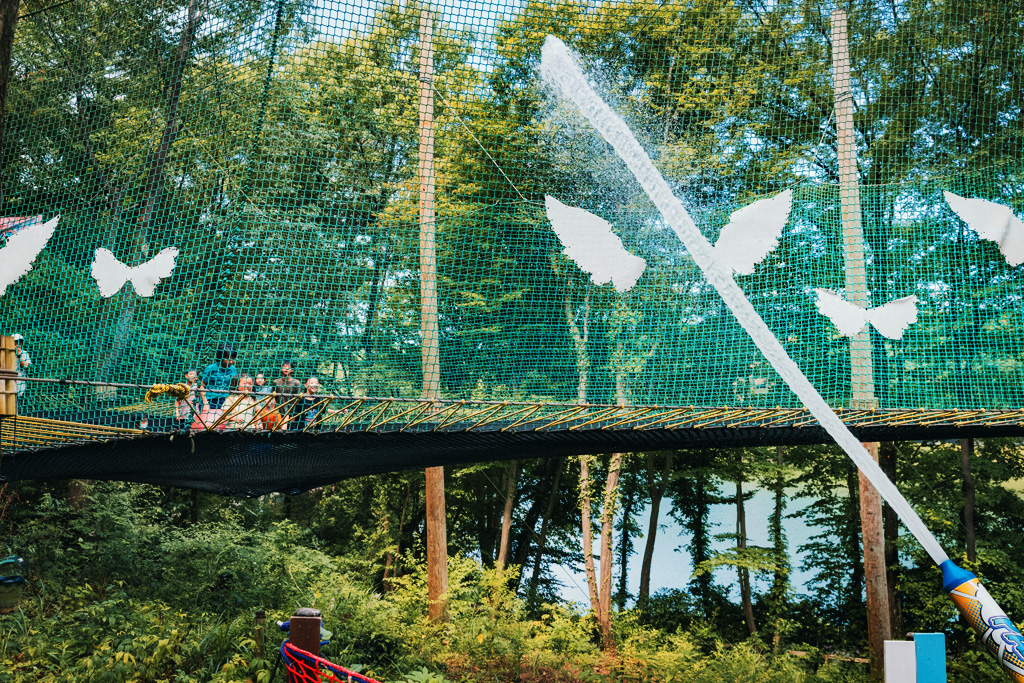 - ジップラインあり/7本/アドベンチャーコース上に設置され、最長のものは約140m程の「ジップスライド」/小学4年生以上、もしくは身長140cm以上、体重100kgまで