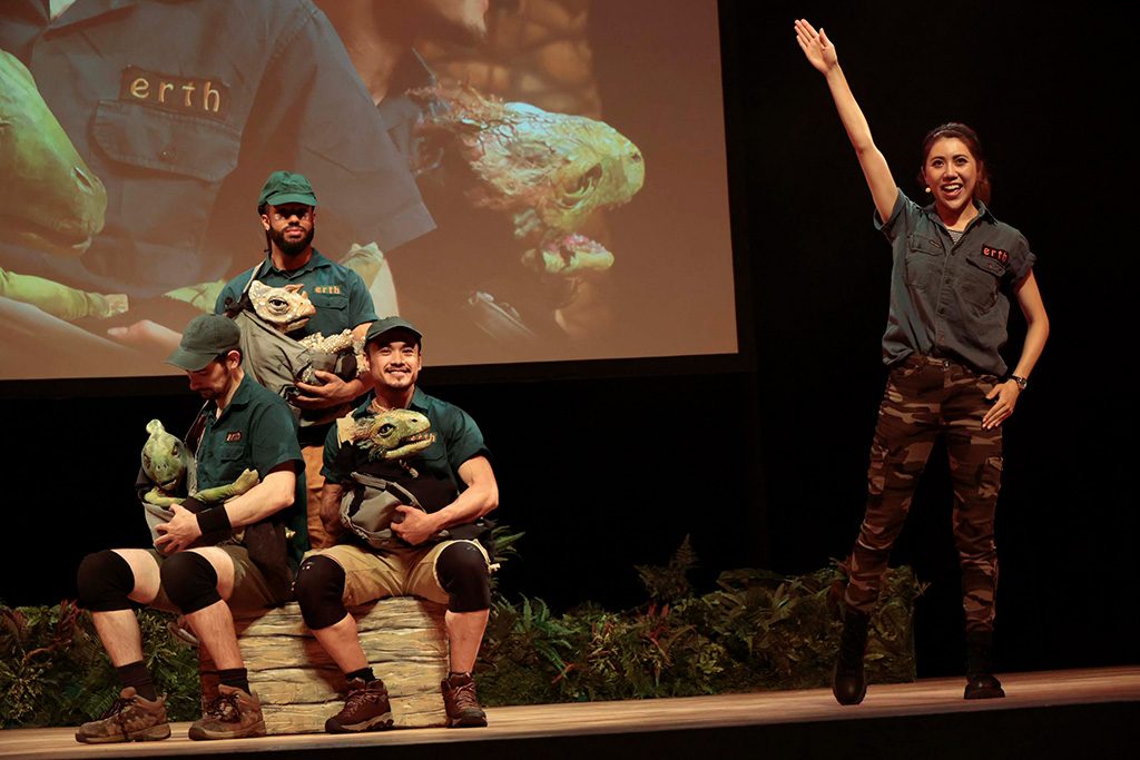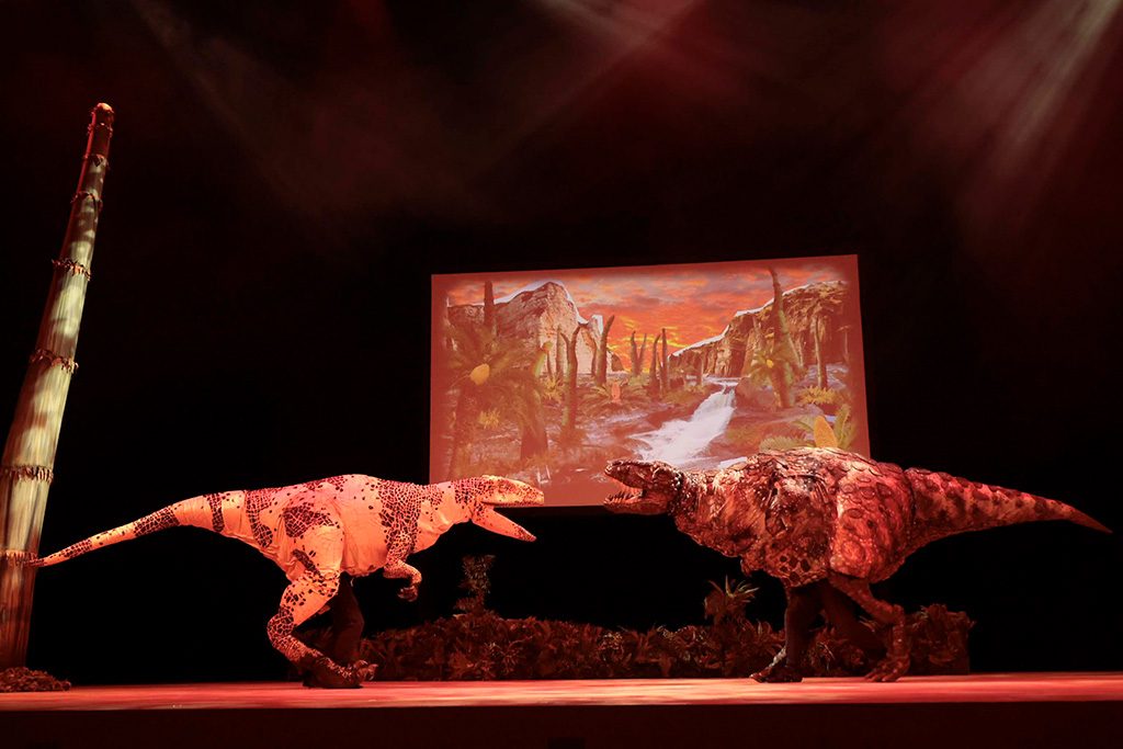 飼育員であるナレーターが恐竜の歴史や生態を元気いっぱいに紹介!恐竜たちがどんな時代を生きて、どんな暮らしをしていたのか、日々の体調チェックやえさやりの光景を垣間見ることもできます。会場を巻き込んで盛り上げてくれるパフォーマンスで、ワクワクすること間違いなし!60分の上演時間はあっという間に過ぎてしまいます。