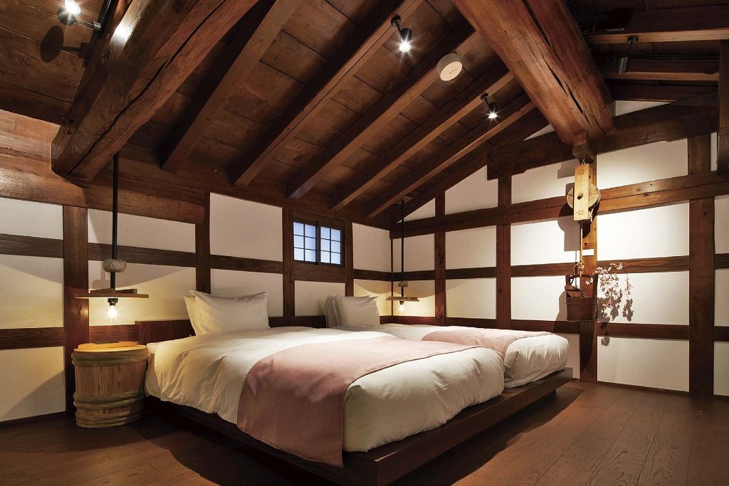 蔵の宿泊棟「高陽-KAYA-」のベッドルーム。